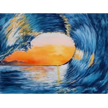 Que pensez-vous d'aller surfer sur cette vague, au coucher du soleil ?