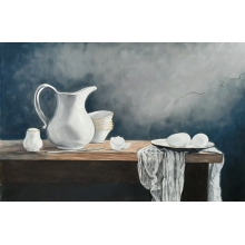 Travail interessant sur les différentes matières comme la porcelaine, la coquille d'oeuf et le linge.